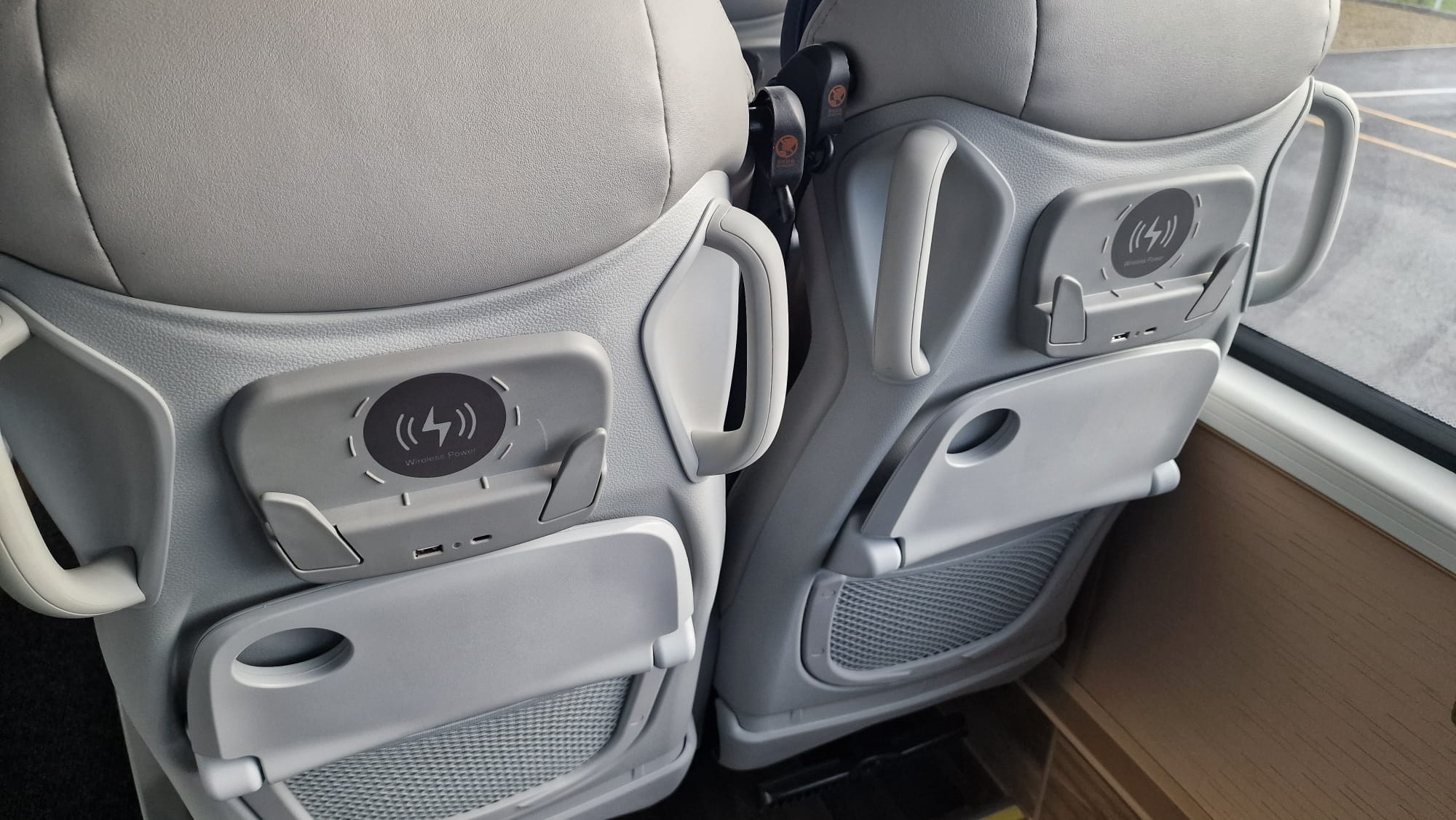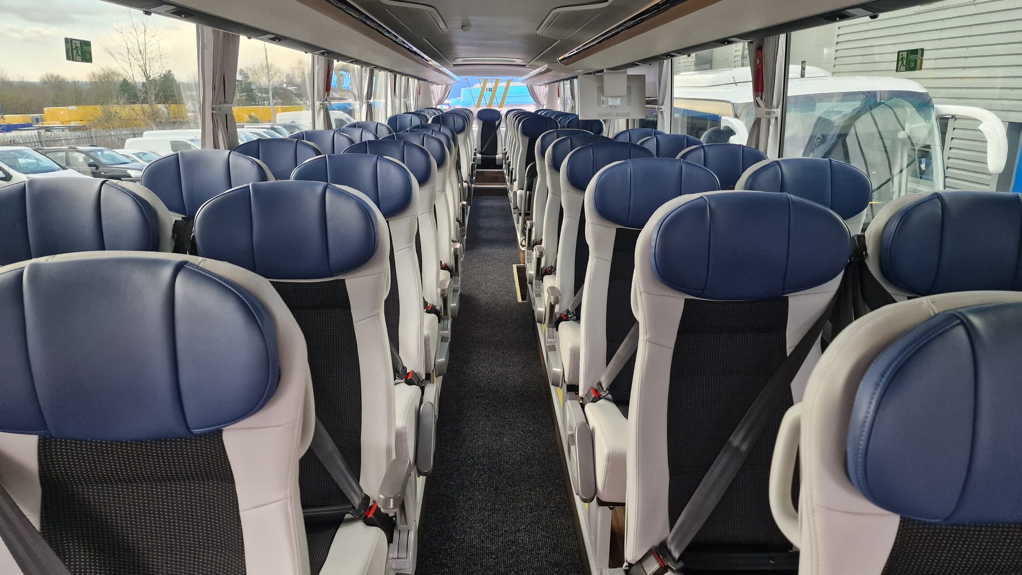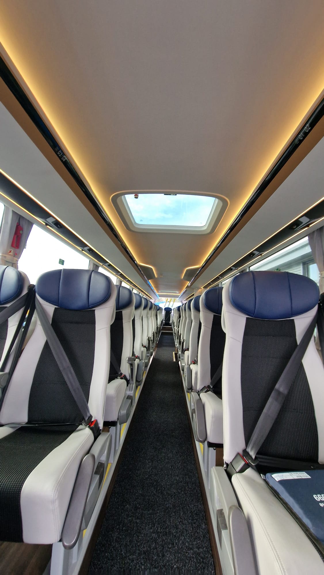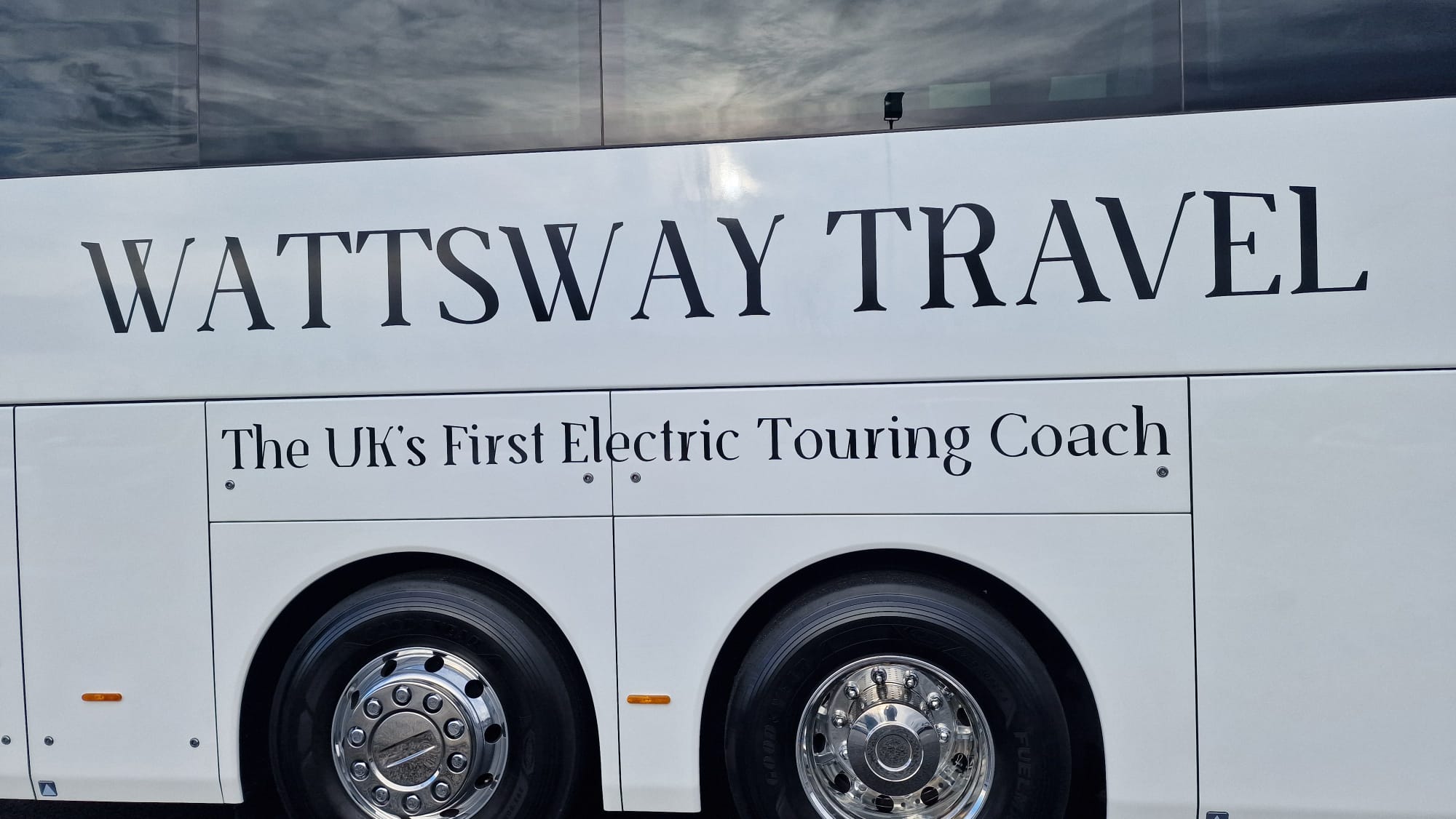 Fully electric touring coach. A/C front and rear, leather seating, luggage, USB & Wireless charging at each seat, DVD player & screen, privacy glass. Plus upgraded "Business Class" seats.